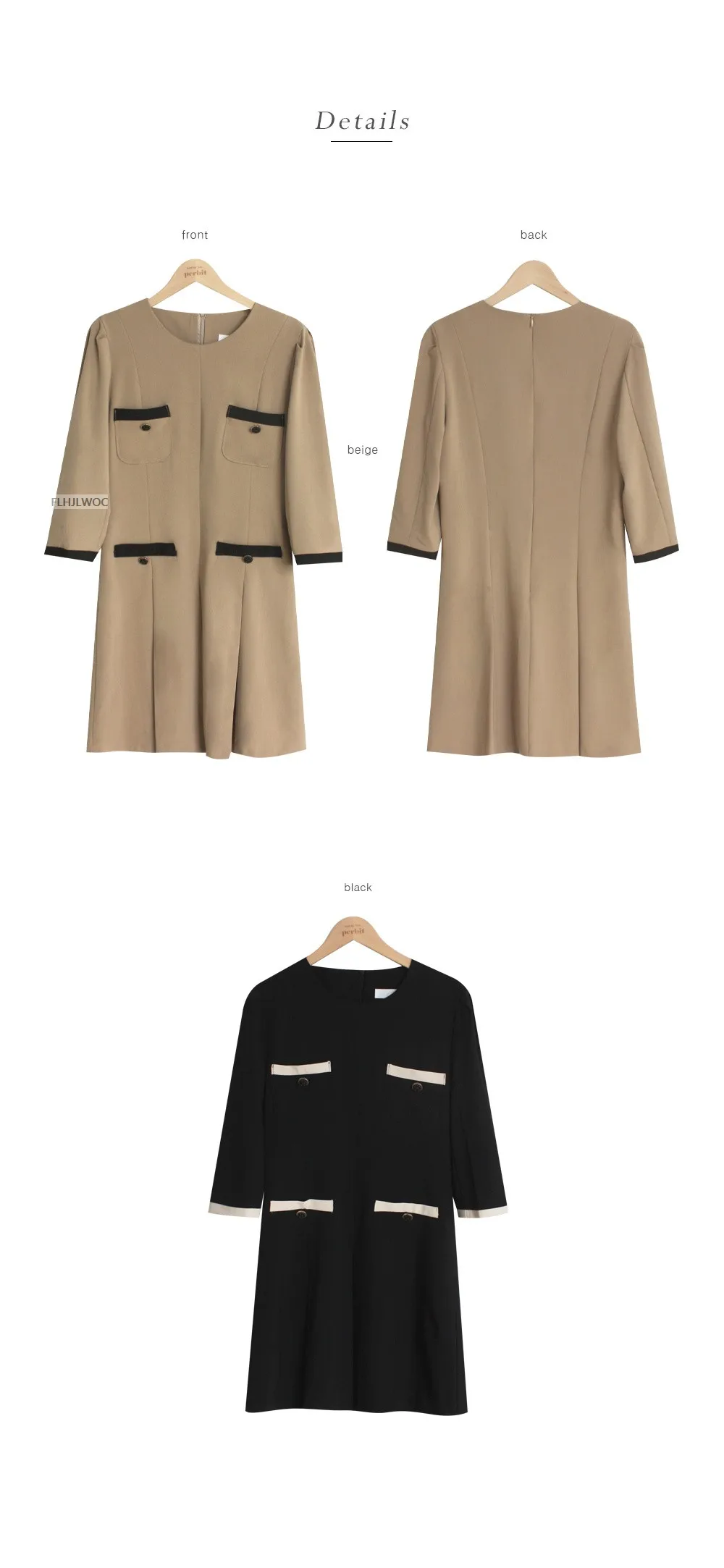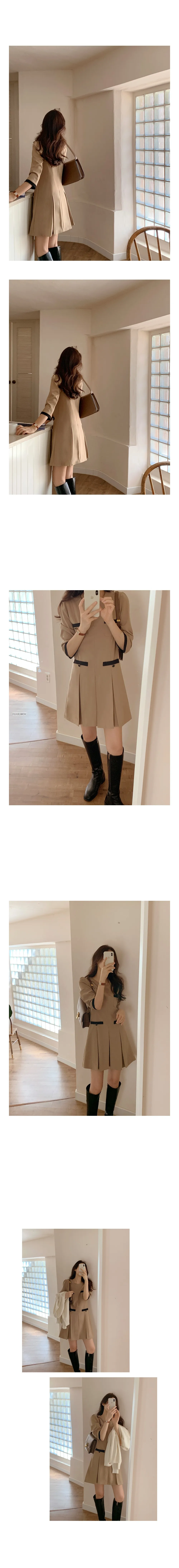 Schickes Retro-Minikleid im französischen Stil – Elegantes Khaki für Büro und Freizeit